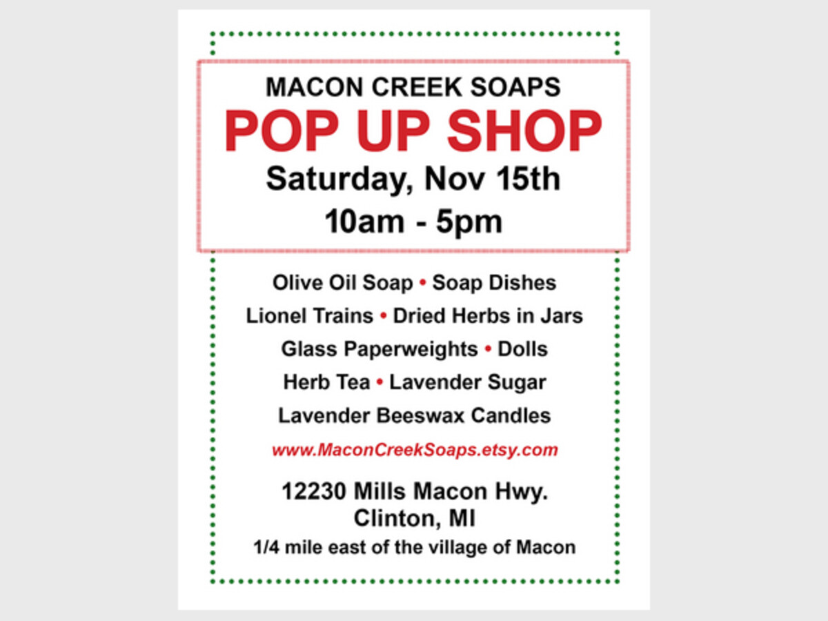 Featuring: Olive Oil Soap, Soap Dishes, Lionel Trains, Dried Herbs in Jars, Glass Paperweights, Dolls, Herb Tea, Lavender Sugar, Lavender Beeswax Candles.