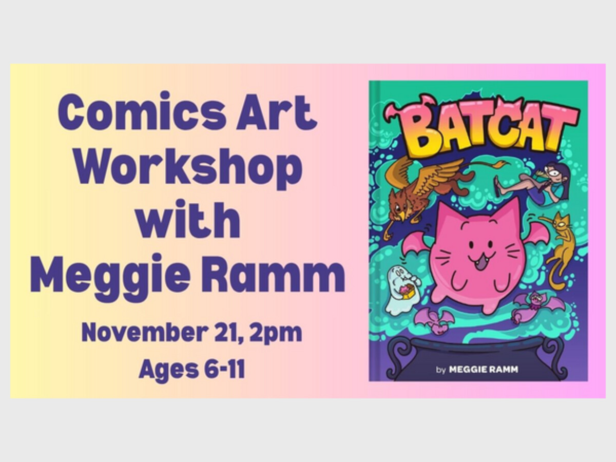 Calling all comics enthusiasts! Join Meggie Ramm, author and artist of the Batcat series, for the workshop "Emanata & Sound Effects Workshop", learning to create emanata, a.k.a. motion lines, and sound effects in comics. Make your own comic characters and stories come to life with squiggles, stars, and motion lines!