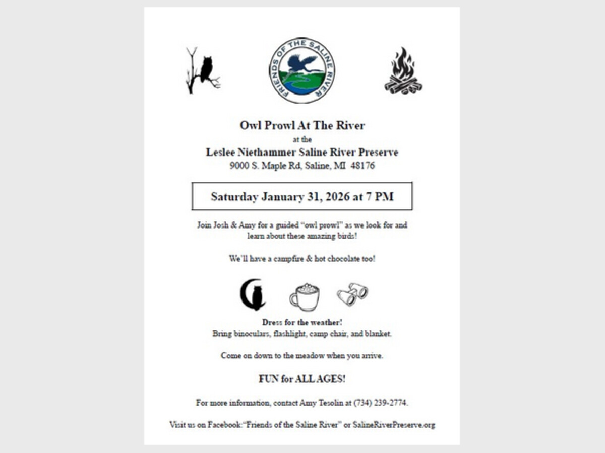 All are invited to join us to look for and learn about owls. We will listen for their calls and watch for them to fly over.