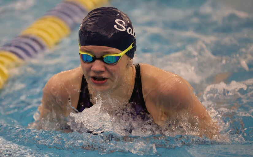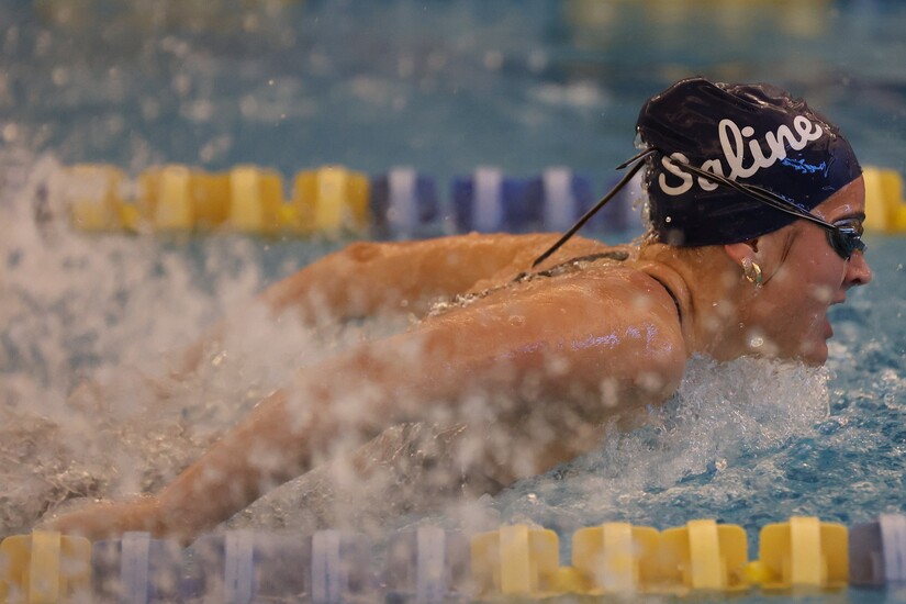 Saline's last win of the night was turned in by Devaney, who won the breaststroke in 1:08.67 to easily get her state cut. Emma Lillie was third in 1:13.27.
