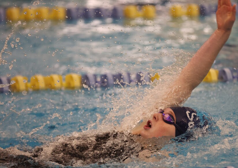 The team of Baldwin, Lily Miklosovic, Hannah King Landmark and Sirbu won the 200-yard medley relay in 1:49.84. Miklosovic and Landmark are freshmen.