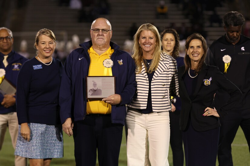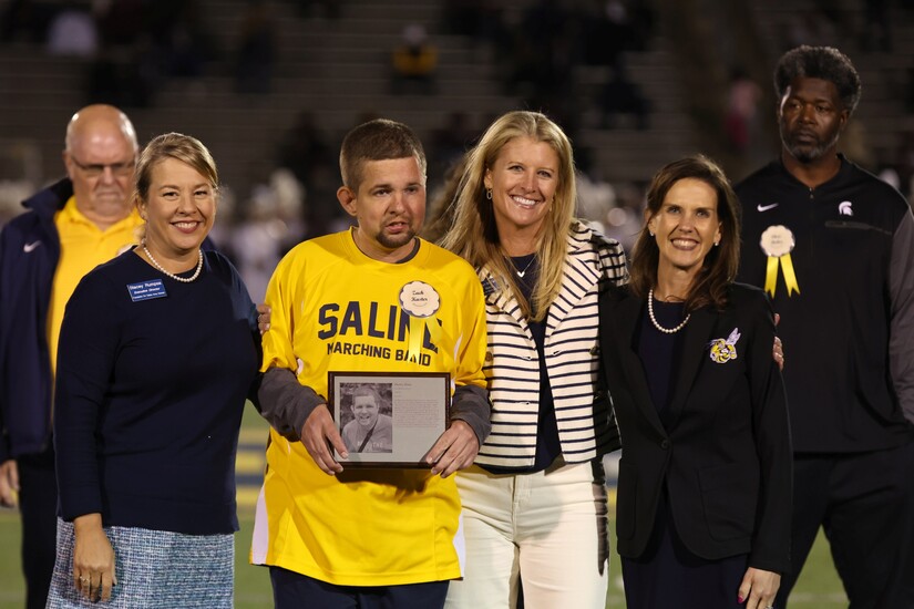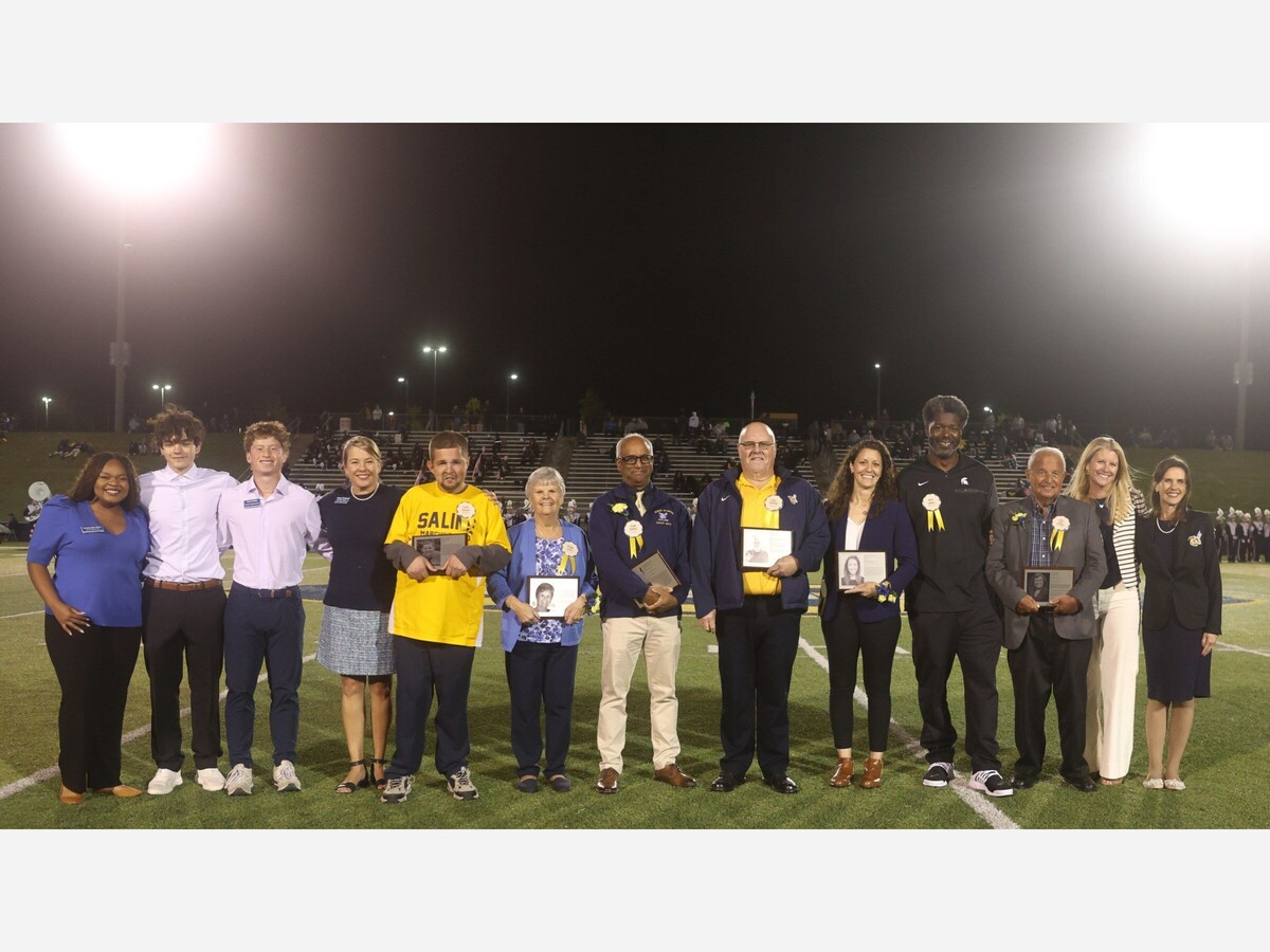 Last weekend, the Foundation for Saline Area Schools recognized its newest Hall of Fame. They were honored early Friday evening with a reception in the school, where their Hall of Fame plaques were installed on the wall. Then they were honored before the football game and at halftime.