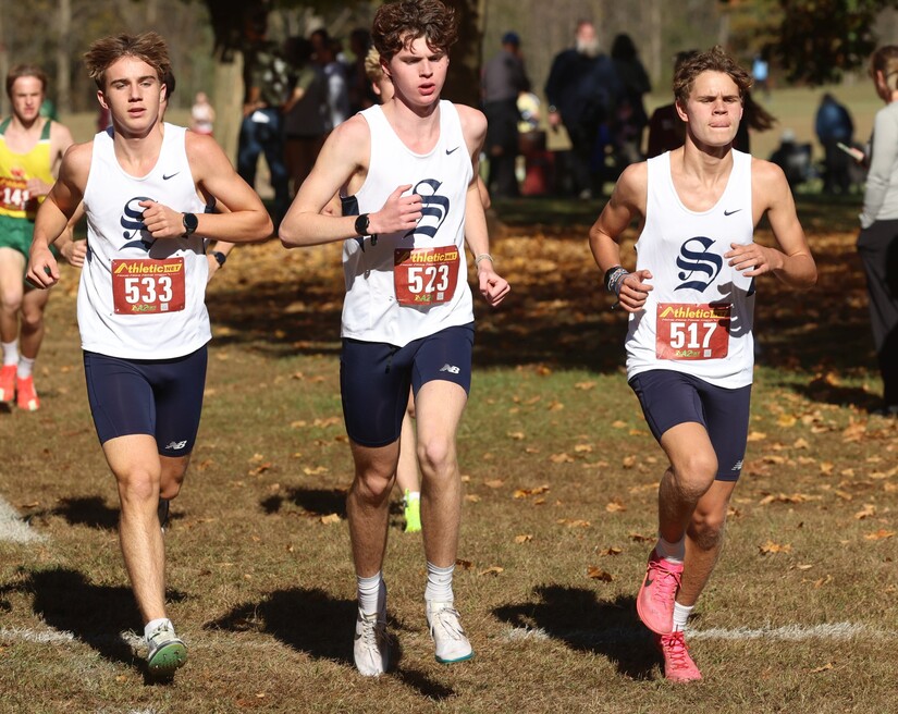 The threesome of Carter Mitton (25th, 17:16.1), Gavin Bast (26th, 17:18.8) and Jack Klein (27th, 17:23.6) also ran for the Hornets.