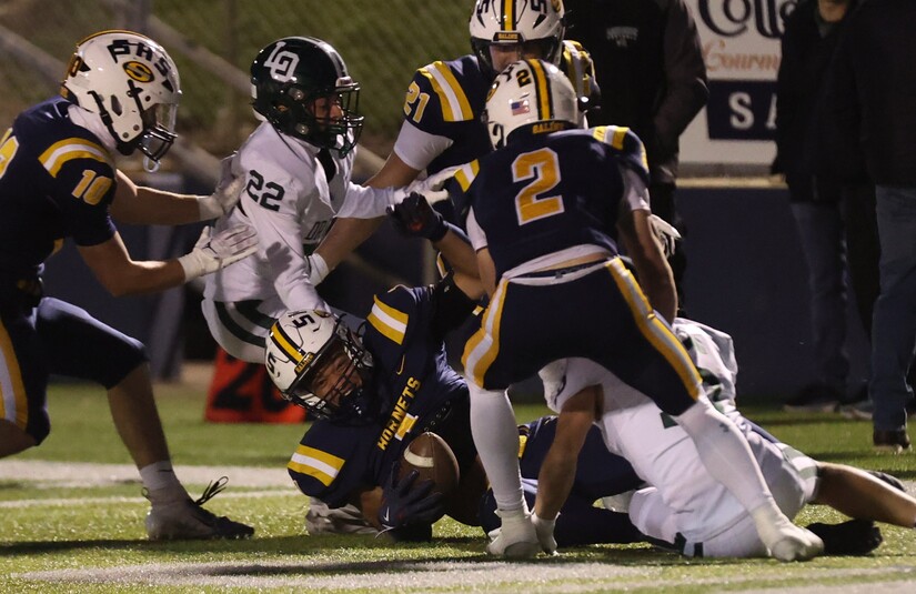 The Hornets were right back on the attack when, on 2nd-and-7, a high snap eluded the Dragons' QB and Issa picked up the fumble.