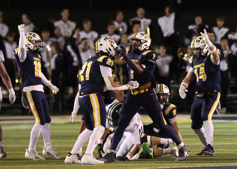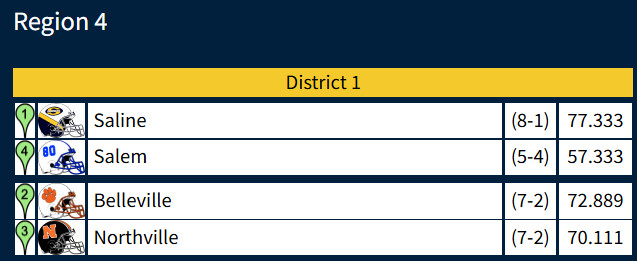 Saline crushed Lake Orion, 49-14, at Hornet Stadium Friday night. The Hornets finish the season with an 8-1 record. The victory would give Saline the top spot in its district if the brackets shape up the way Snooze2You forecasted (and the games in his predicted district went the way he thought they would.)
