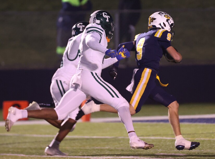Saline needed to stop Cass Tech to start the second half, and they did not. A long drive, mostly on the ground, ended with a three-yard TD run by Julius Taylor. Cass Tech led 35-14.