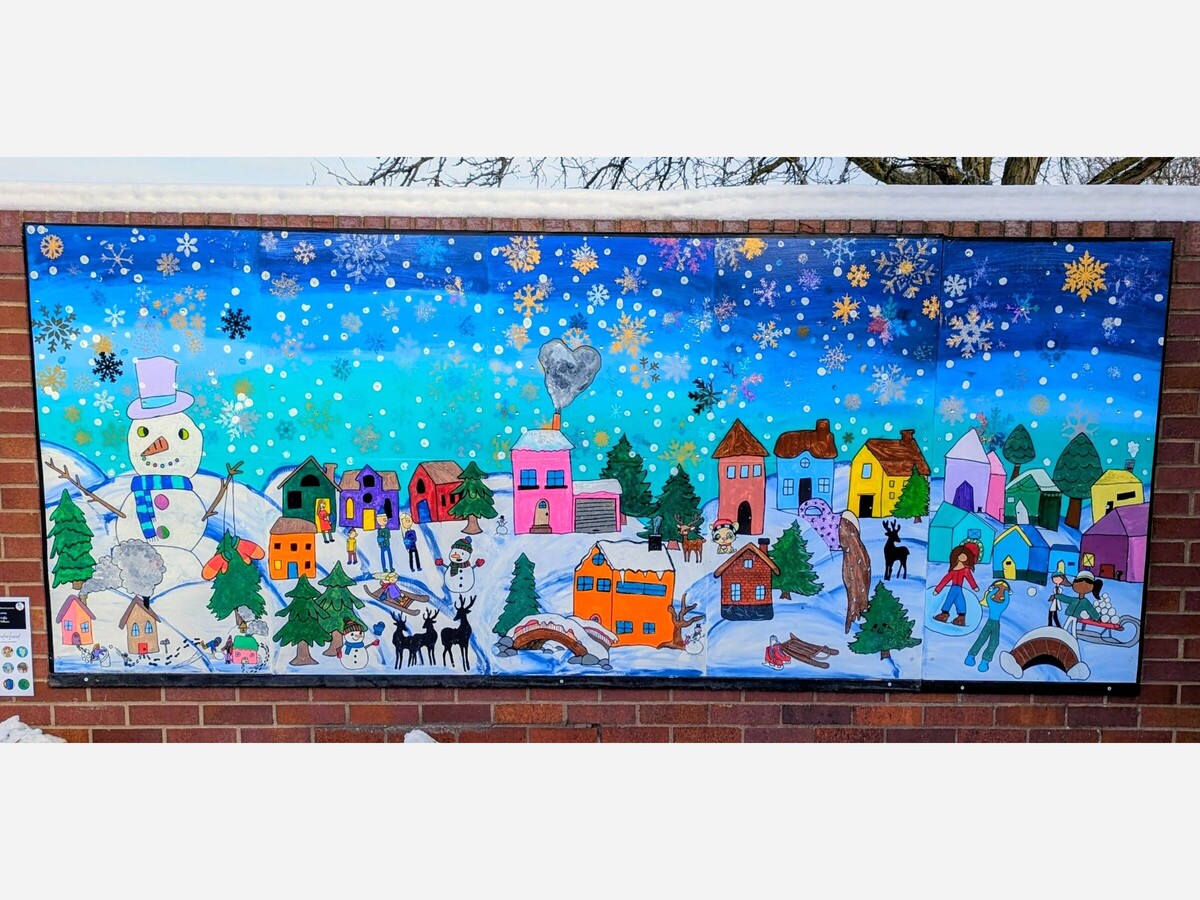 In a heartwarming display of creativity and teamwork, fourth and fifth-graders from Saline Community Education’s Mural Making class recently collaborated on a Winter Wonderland mural. The project transformed blank panels into a sparkling, snowy scene filled with evergreens, snowy hills, kids playing, and snowflakes—bringing the fun of winter to life.