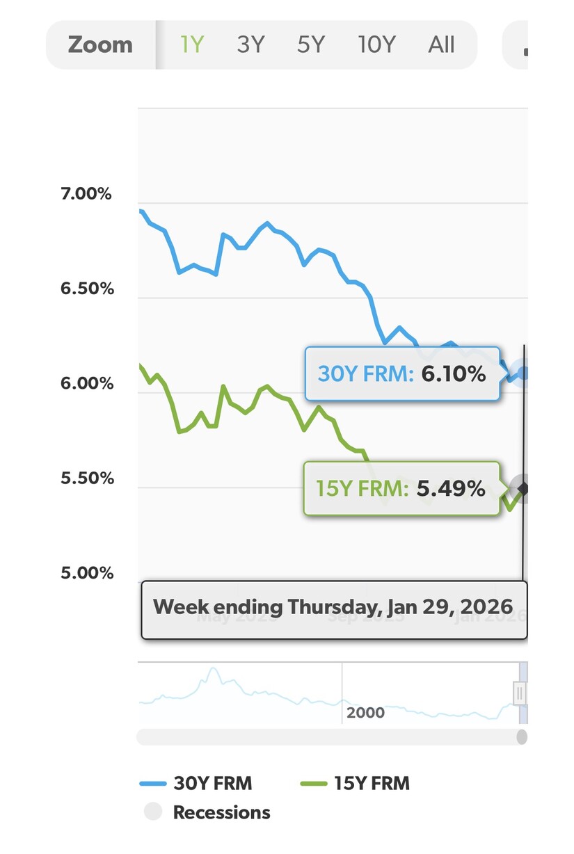 Interest rates were down nearly a full percentage point at the end of last year according to Freddie Mac data.