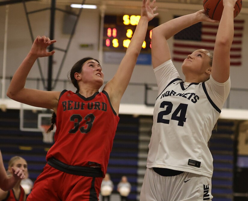 Backus scored from inside to make it 5-0. After the Bedford basket, Powell made it 7-2, slicing through the paint to score.