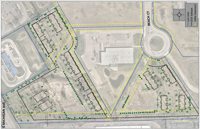 The development would include Lot 20A, between Zippy's auto wash and The Oaks shopping center on Michigan Avenue, and Lot 13, at the end of Barnes Court, just to the south. Cambridge Real Estate LLC is set to buy Lot 20A from the city. The applicant is proposing two 4,000-square-foot retail buildings, each with two units and a drive-through, as part of phase 1 of the project. Phase two would include five structures with three to five units, totaling 22 residential units on the back half of Lot 20A, and four residential structures with 14 units on Lot 13.