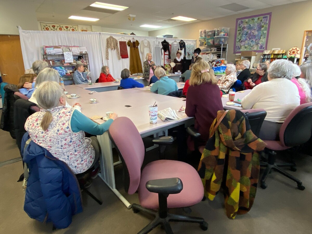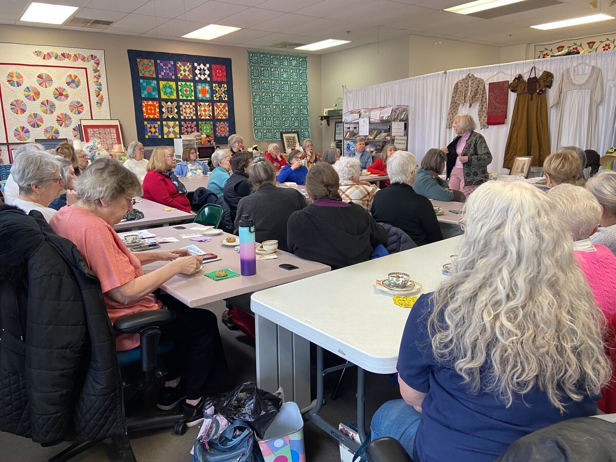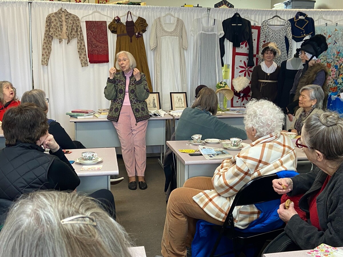 The Quilting Season joined Jane-ites around the world in celebrating the 250th anniversary of Jane Austen’s birthday with an Austen-inspired tea this Saturday. Ladies packed the shop to enjoy tea, sweet treats, and a presentation on the clothing of Austen’s Regency period.