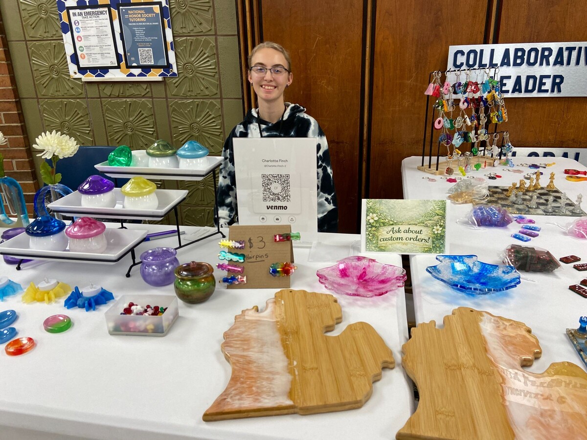 Charlotte Finch, a student at Milan High School, was selling her handmade resin items.