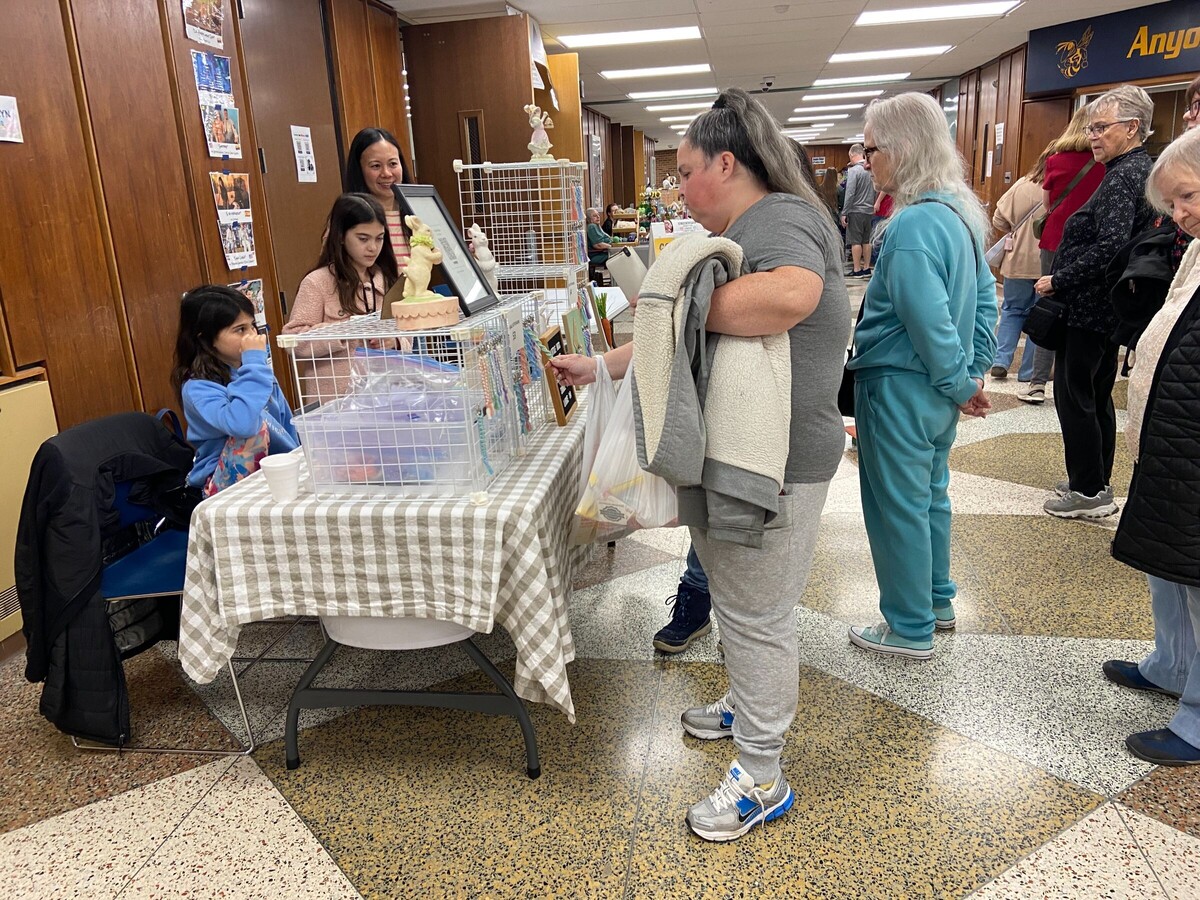 In addition to the vendors, shoppers could visit the cafeteria for snacks and children’s activities that included caricatures by Deb Adamcik and photos with Peter Cottontail. Kids could get airbrushed tattoos and balloon art creations, or try their hand at various crafts and cookie decorating as well.