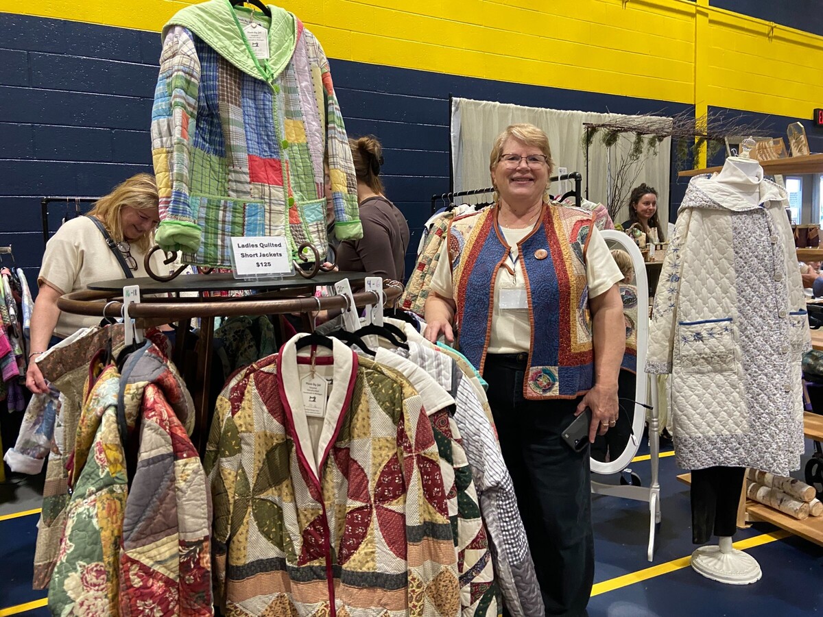 Jill Chaffee has been a vendor at the Saline craft shows for four years. “I repurpose quilts into coats, jackets and blazers. I also use my remnants to embellish denim jackets and sweatshirts. Everything is upcycled.”
