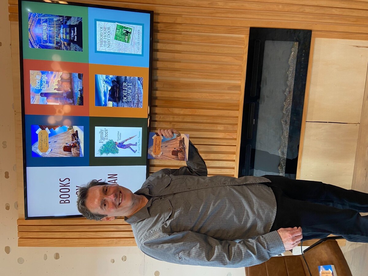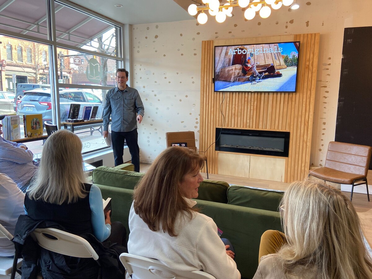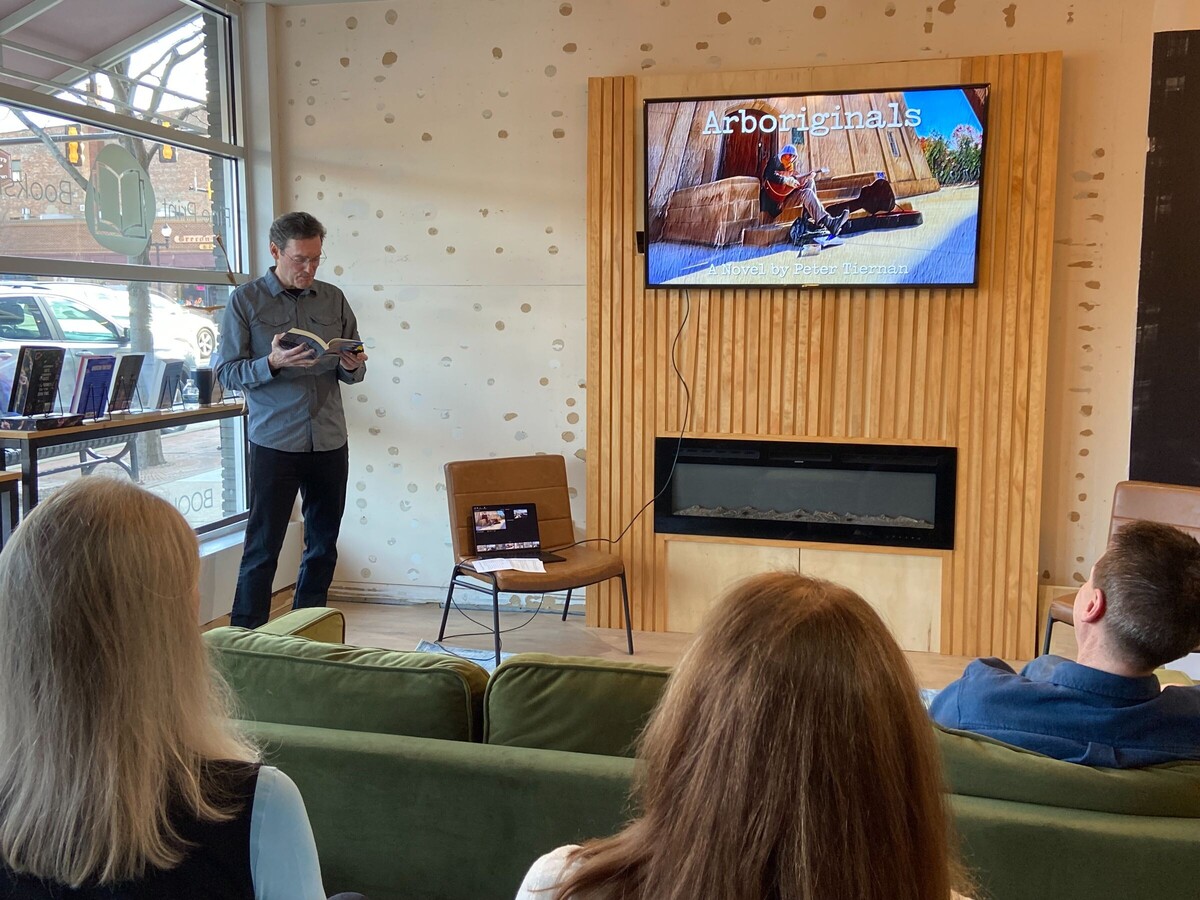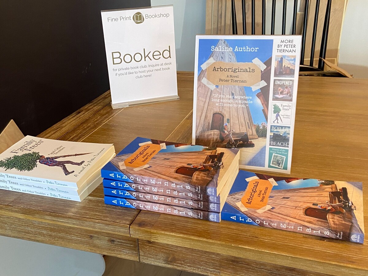 The Fine Print Bookshop in downtown Saline was the host to local author Pete Tiernan on Thursday. Tiernan read an excerpt from his latest novel, Arboriginals, and answered questions from the attendees.