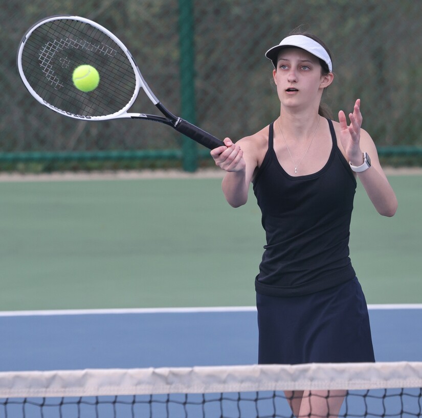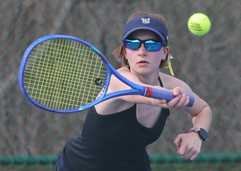 Sophia McGeeSaline split their four singles matches. Sophia McGee, a sophomore, had the tough task of competing in singles 1. She lost 6-1 and 6-3.