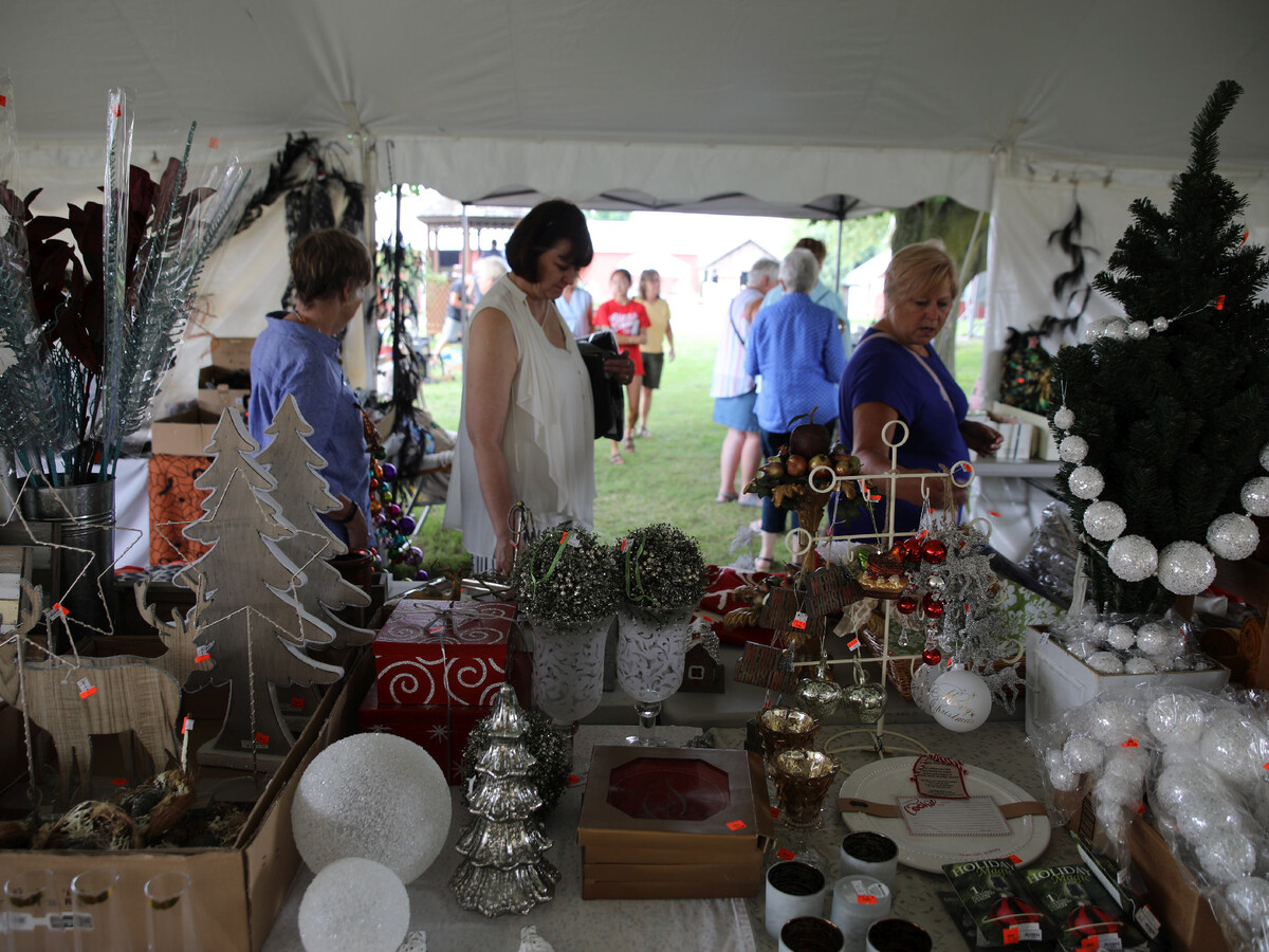 One of the big draws is the Pineapple House tent. Joy Ely owns the boutique at the corner of Michigan and Ann Arbor Street. Ely used to have sidewalk sales downtown. But there wasn’t much room. It was loud. And it was hot. She decided to do her sale at the Rentschler Farm.