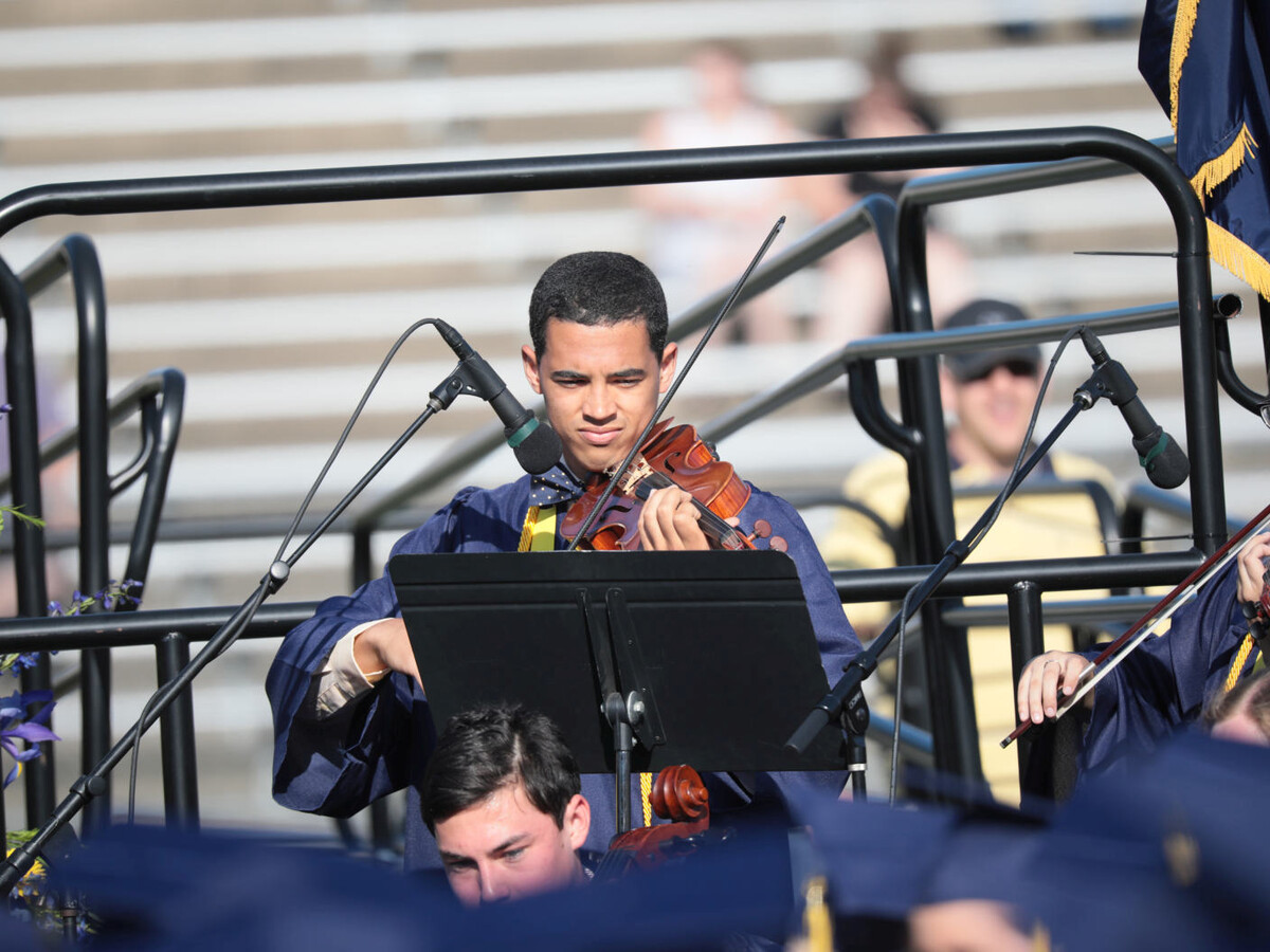 The senior members of the Saline High School Chamber Choir and Saline High School Chamber Orchestra performed at the Commencement ceremony Sunday at Hornet Stadium.