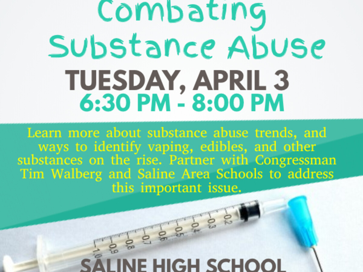 Congressman Tim Walberg, Chairman of the Subcommittee on Health, Employment, Labor, and Pensions, is partnering with Saline Area Schools and the district's Liaison Officer from the Pittsfield Police Department to share concerns and resources with educators and parents.