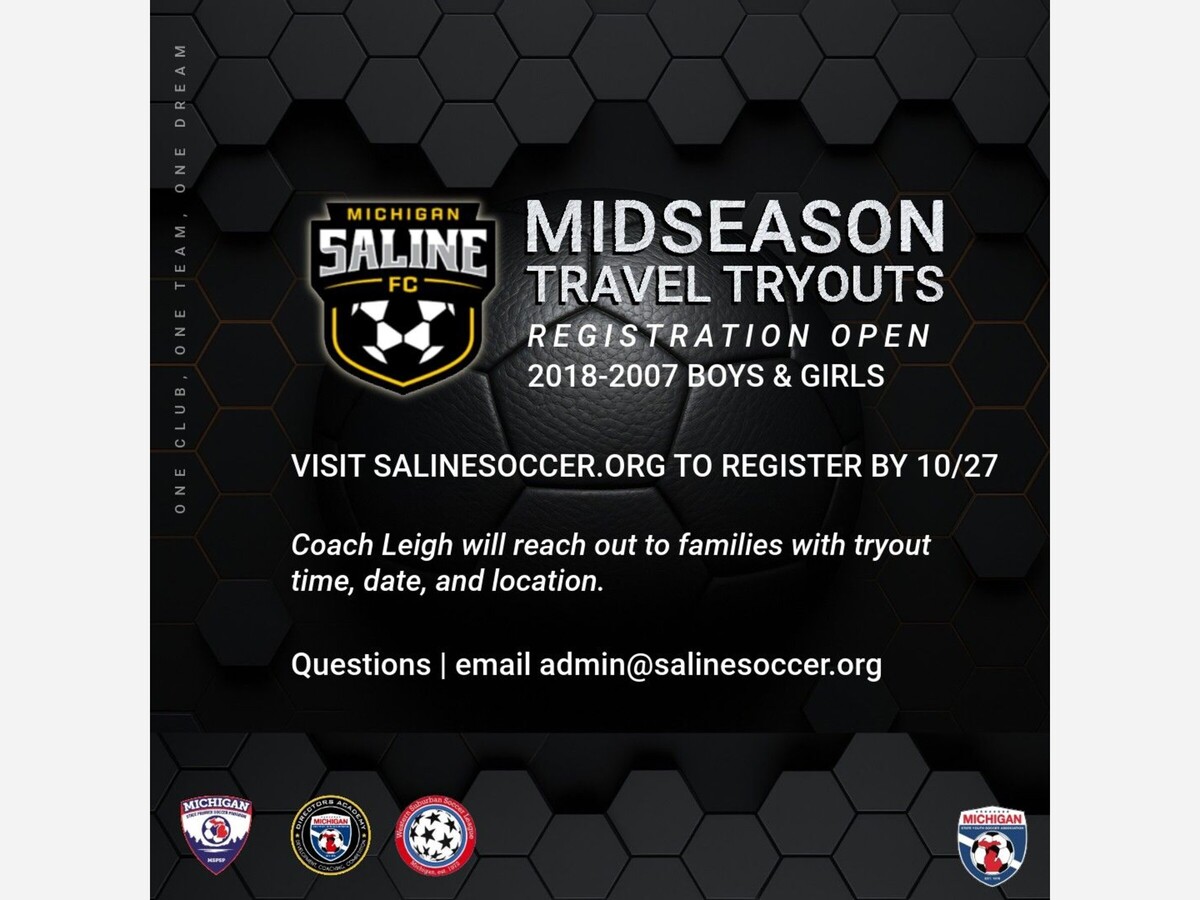 Saline FC is excited to announce that midseason tryout registration is now open (2018-2007 Boys & Girls)!